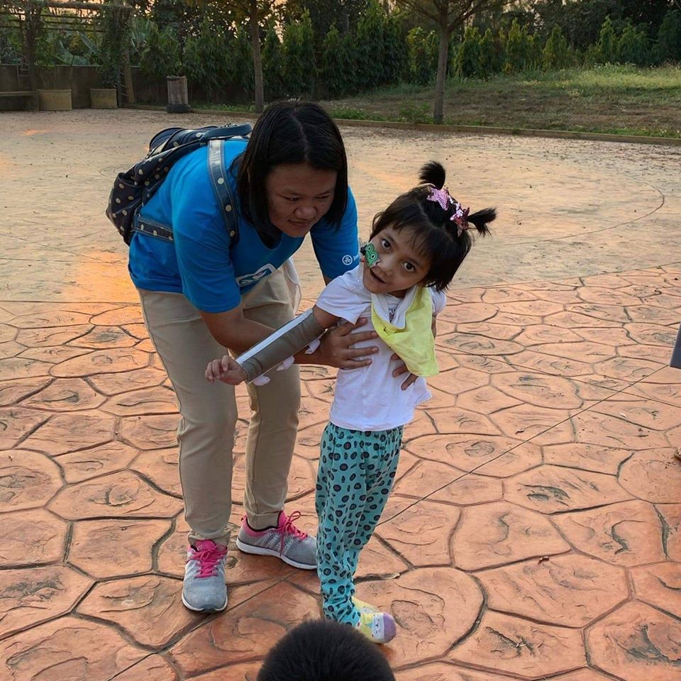 As she grew older, Air had more frequent hospital admissions and in 2019 she became critically ill, spending over 3 months inpatient requiring ventilator support. Hospital staff told Air’s mom, Yupin, that Air’s survival was unlikely. Oh, but she is STRONG. Upon discharge, Air and her mom moved from their mountain village to the city in order to receive proper medical treatment and therapeutic intervention. Yupin also arranged for her older daughter, Praewa, to transfer to a boarding school near their new home. At this time the family depends fully on sponsors to meet their most basic needs.