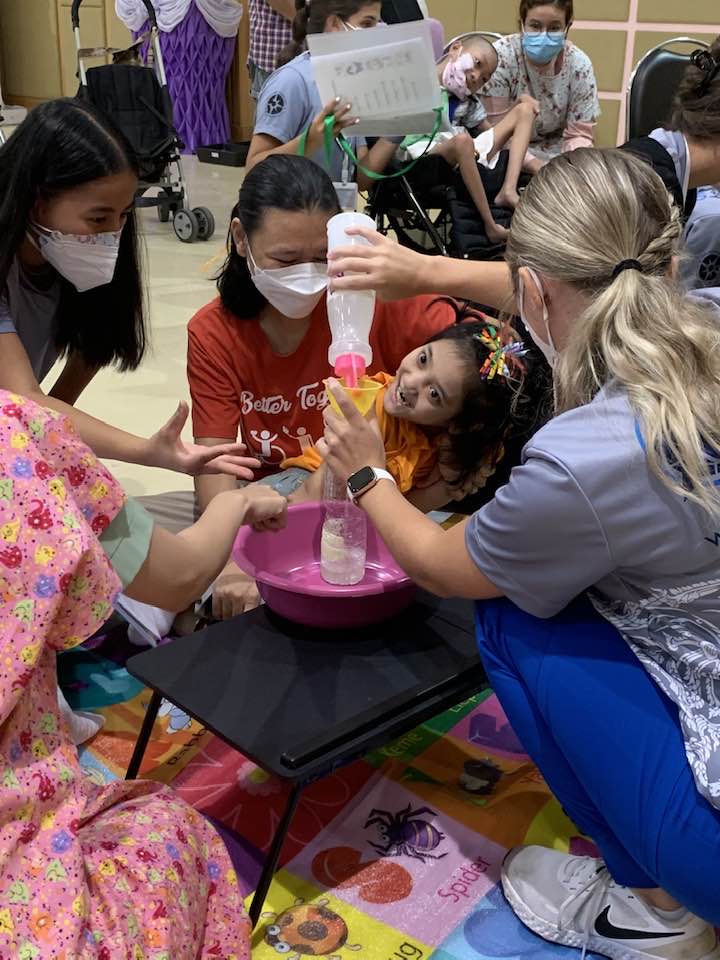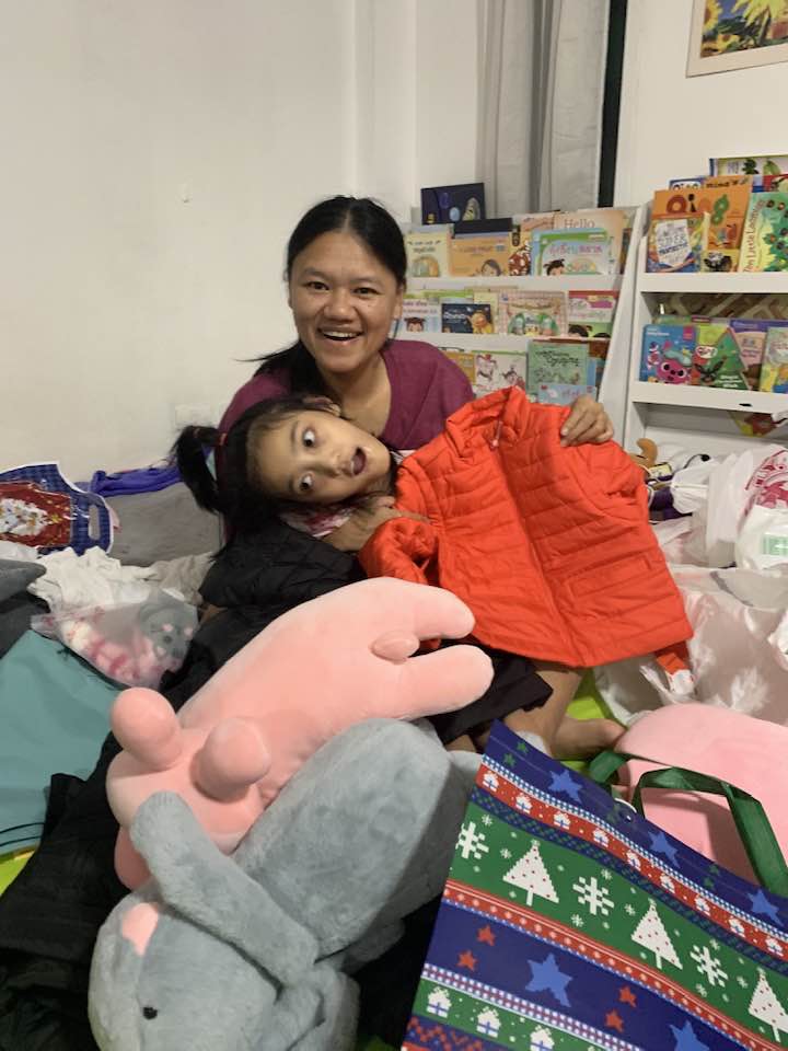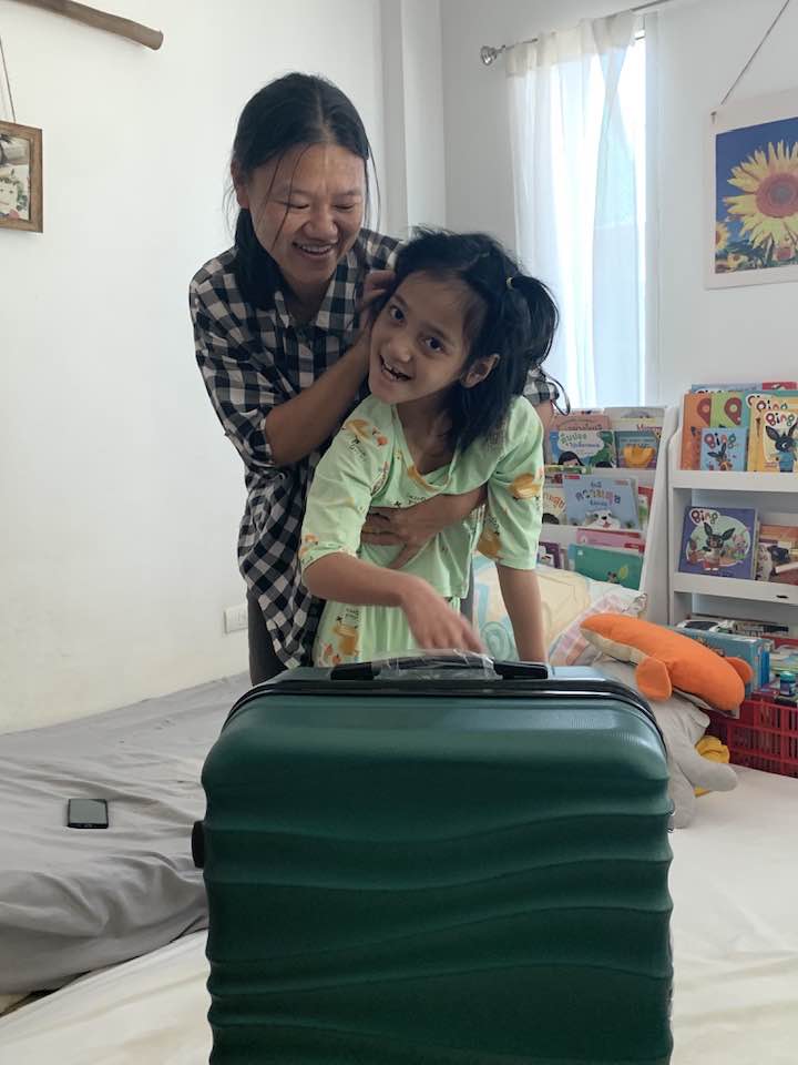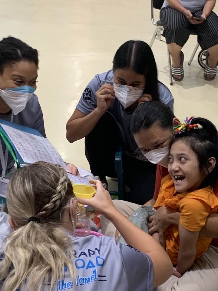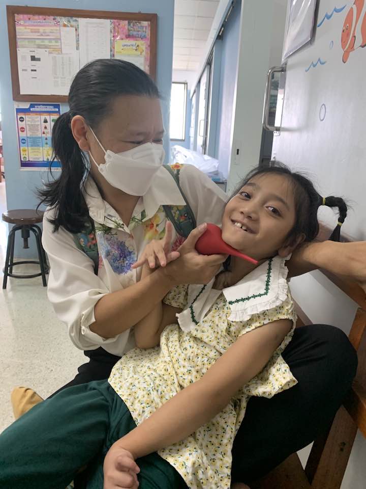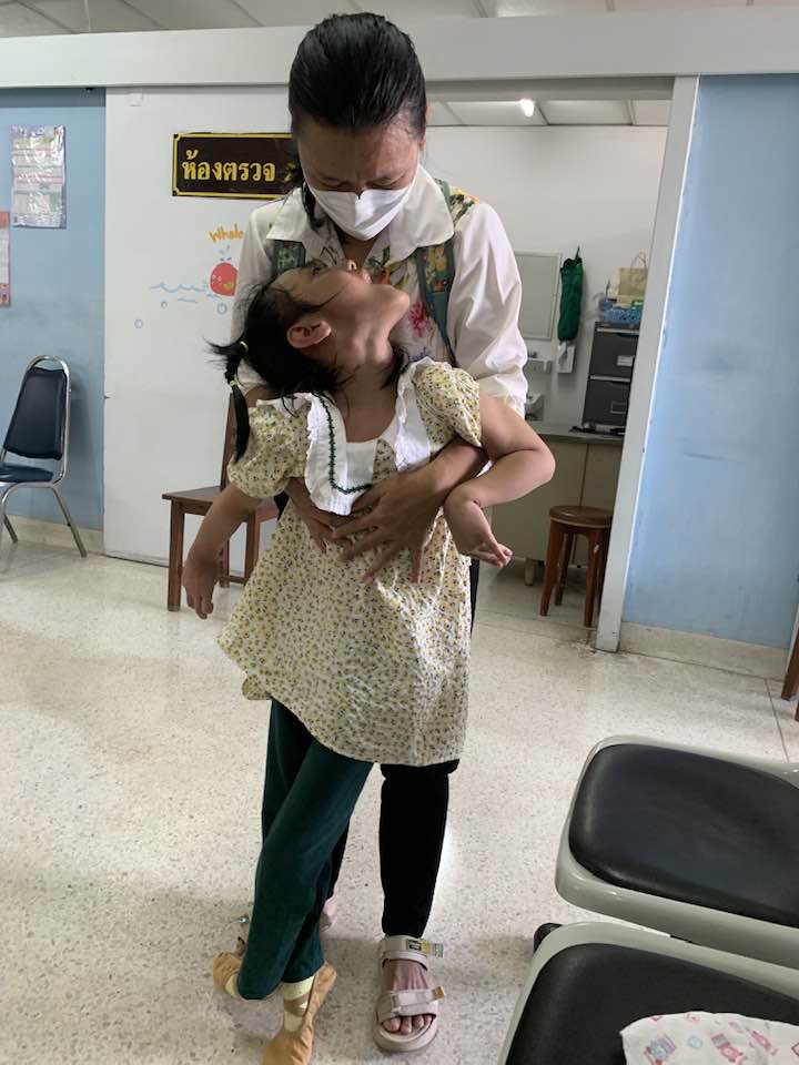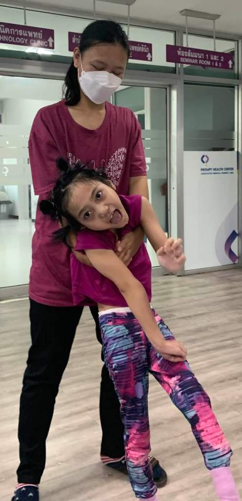 DECEMBER brought time to celebrate and share with friends both here in Chiang Mai. Thanks to generous donations for the children in the AAC story group, Air was able to serve as designated shopper helping to pick out items for her friends. The month also brought repeated botox injections under the care of a new physician as the original doctor moved. Some anxious times but she now has her primary neurologist advocating alongside the family. …and Air got to ride on an airplane and celebrate Christmas in Bangkok. Yupin was able to meet with a family group she’d like to replicate here in Chiang Mai and Air had consults with two experts in both Deep Brain Stimulation and Child Development.